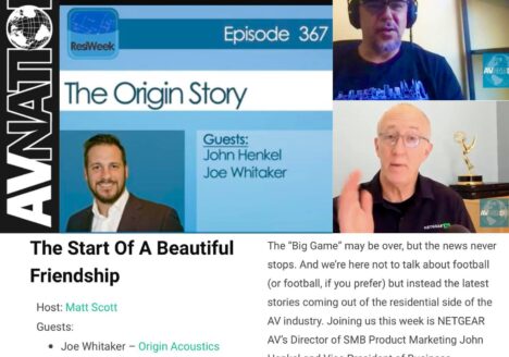 Check out AVNation’s Resiweek new episode to hear John Henkel, NETGEAR AV and Joe Whitaker, Origin Acoustics talk about their new partnership, why it’s important, and how it’s going to benefit the integrator. View AV Nation episode: https://www.youtube.com/watch?v=H54019W8FU8