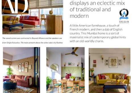The sound system was contracted to Beyond Alliance and the speakers are from Origin Acoustics. Architectural Digest. See full story at: https://www.architecturaldigest.in/story/a-mumbai-home-that-displays-an-eclectic-mix-of-traditional-and-modern/?fbclid=IwAR2xRkVAVBDChMtgUIlROIil1e3qCyPMdj5RmX1t0RyGMKyoLpGbVcevFis