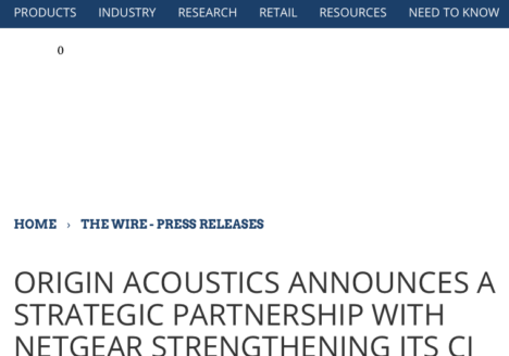TWICE Magazine: ORIGIN ACOUSTICS ANNOUNCES A STRATEGIC PARTNERSHIP WITH NETGEAR STRENGTHENING ITS CI DESIGN CENTRIC ECO SYSTEM