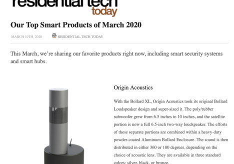 May 21, 2020 – Sound & Vision Magazine Feature: It’s a Great Time to Bring AV Into Your Backyard by Bob Ankosko Features: Origin Acoustics Landscape line. https://www.soundandvision.com/content/it-s-great-time-bring-av-your-backyard?fbclid=IwAR2C0ZpdjpxAh400eXAhVop3ZchNJ0CUOAtJu7pO6YNIU1jgKY5vPPxMM5A