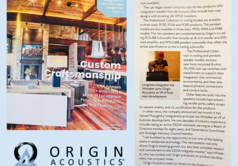 CE Pro’s March issue, p22. Origin Acoustics Augments Pro Series; Adds Whitaker to Exec Team