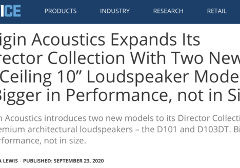 09-23-20 – Origin Acoustics Expands Its Director Collection With Two New In-Ceiling 10” Loudspeaker Models – Bigger in Performance, not in Size Origin Acoustics introduces two new models to its Director Collection of premium architectural loudspeakers – the D101 and D103DT. Bigger in performance, not in size.