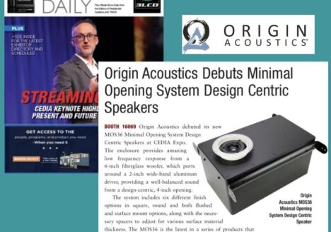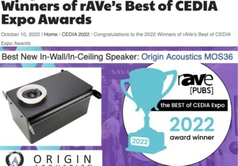 rAVe Publications: Origin Acoustics MOS36 Minimal Opening System Speaker Wins rAVe’s Best of CEDIA Expo Award- Best New In-wall / In-ceilings Speaker! Thank you rAVe! The new MOS36 easy to install enclosure provides amazing low frequency response from a 6” fiberglass woofer, which ports around a 2” wide-band aluminum driver, providing a well-balanced sound from…