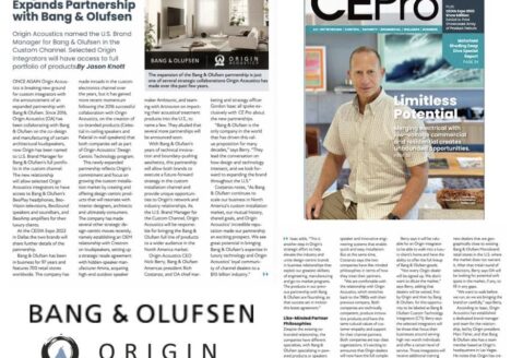 CE Pro Magazine – Oct 2022 Issue – Origin Acoustics Expands Partnership with Bang & Olufsen