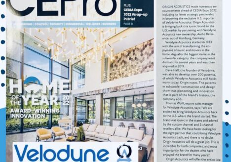Origin Acoustics-Velodyne is Back! News story is featured in the CE Pro Magazine November issue!